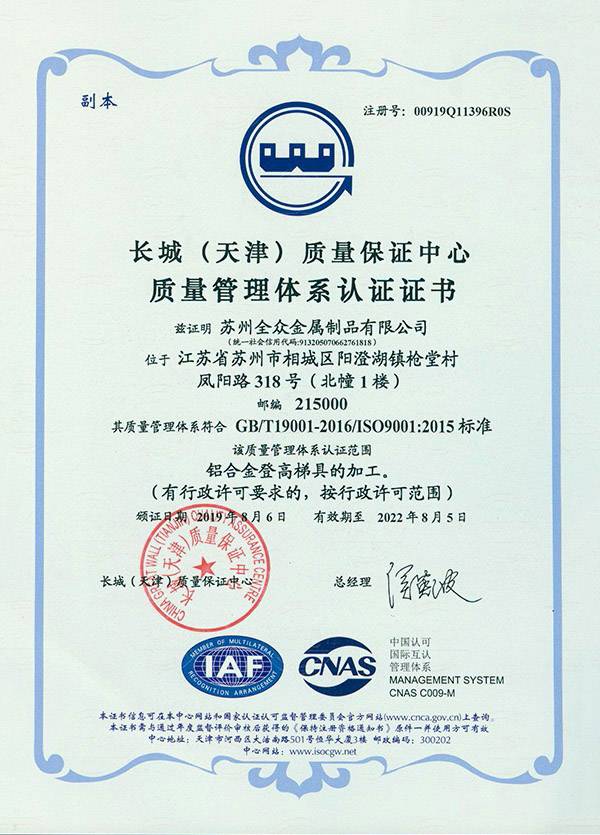 开云官方在线入口-开云(中国)专注铝合金制品的开发“产品就是人品”的企业理念,不断进行技术创新、设备创新、服务创新、和管理方式创新来继续研发出更多满足未来发展需要的产品, 公司产品通过欧盟认证取得CE认证并取得证书,铝合金脚手架系列产品通过SGS认证,铝合金平台和梯具类产品均严格按照GB12142-2007,GB17888等标准设计生产。